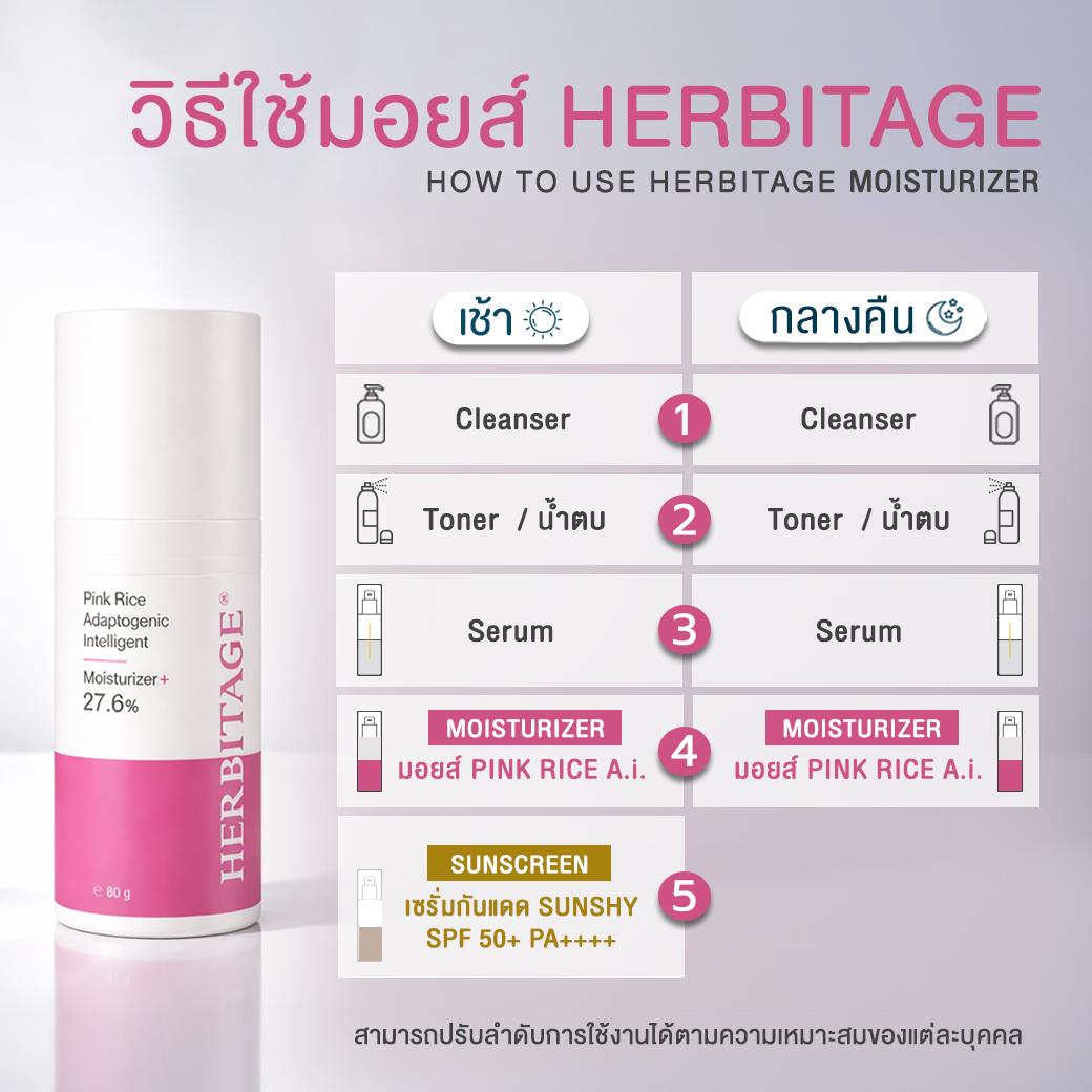 ชื่อผลิตภัณฑ์ : HERBITAGE PINK RICE ADAPTOGENIC INTELLIGENT MOISTURIZER + 27.6